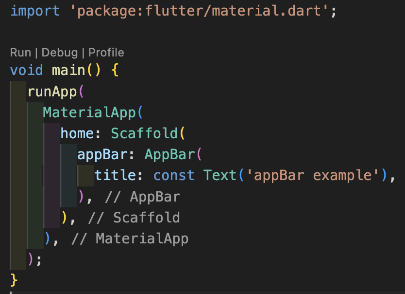 flutter 코드를 실행할 경우 main이라는 함수를 찾아 실행하게 됩니다