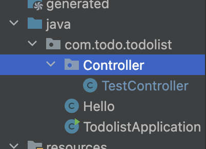 Controller라는 패키지를 만들어 TestController 클래스를 만들어주었고, 아래와 같이 코드를 작성하였다.