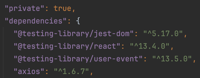 설치가 성공적으로 완료가 되었다면 react 프로젝트의 package.json 파일을 열면 dependencies에 axios가 추가되어 있는 것을 확인할 수 있다.
