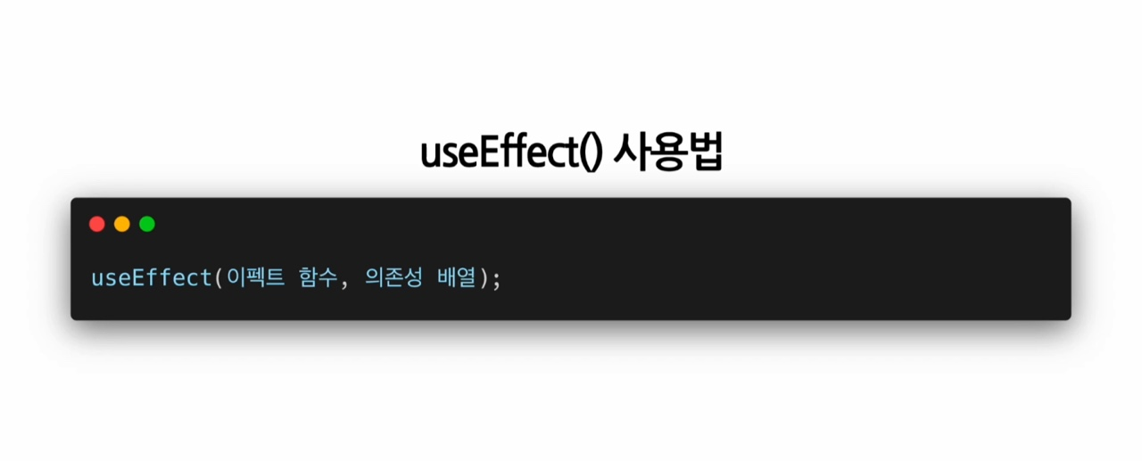 => 리액트의 함수 컴포넌트에서 Side effect를 실행할 수 있게 해주는 Hook